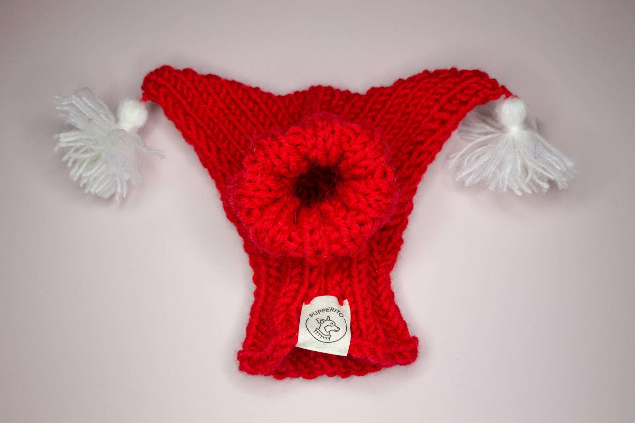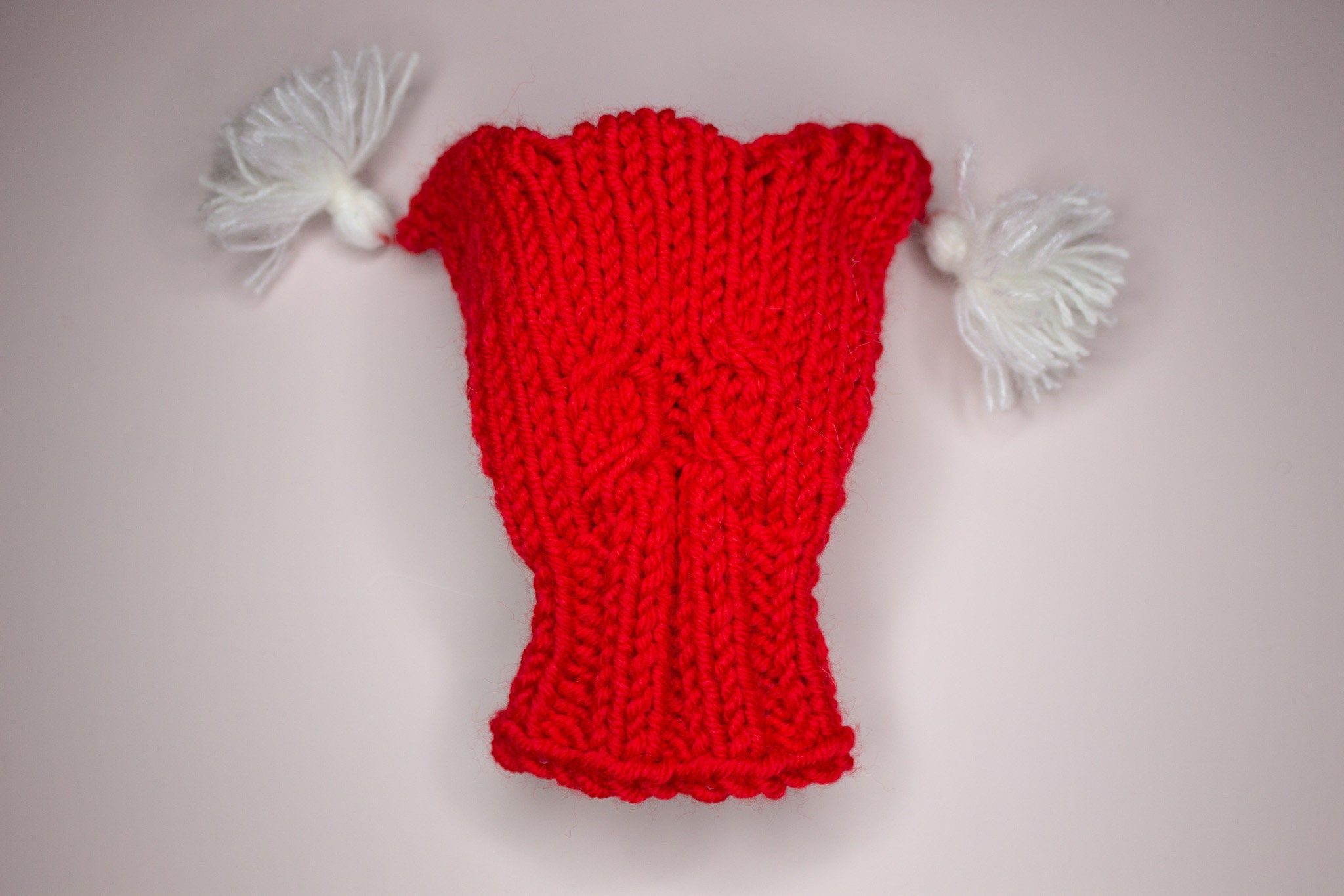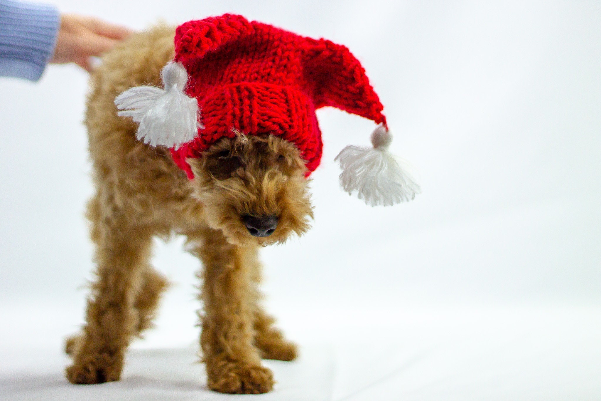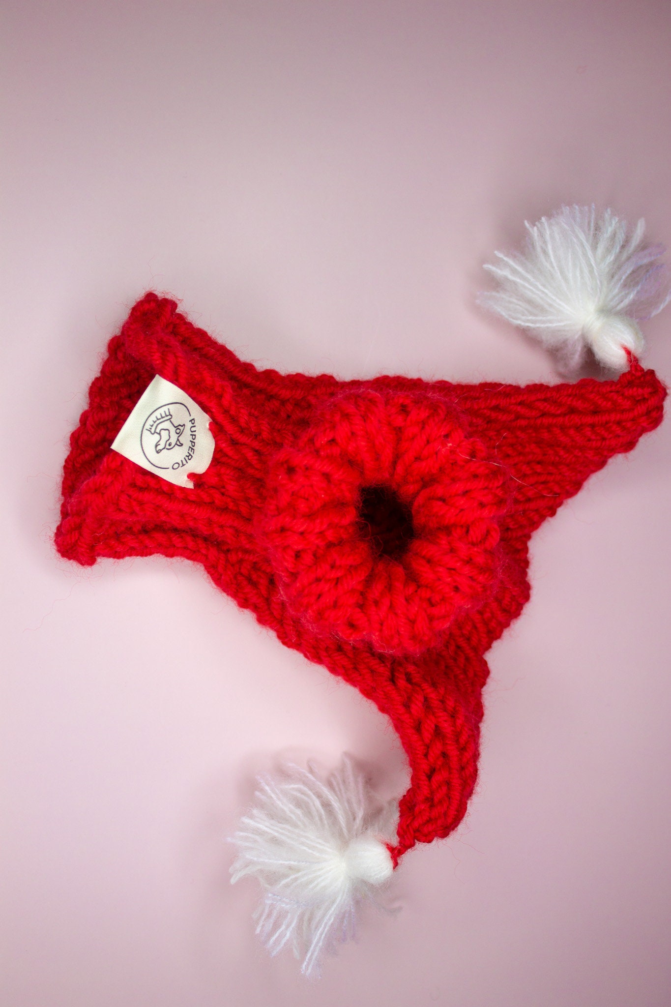 Christmas dog hat for small to large dogs with horns and tassels in red and white wool yarn is perfect for Christmas! This handknitted dog beanie / dog snood will warm your dog’s ears perfectly as it is handknitted in warm natural wool blend yarn. GET YOURS TODAY!