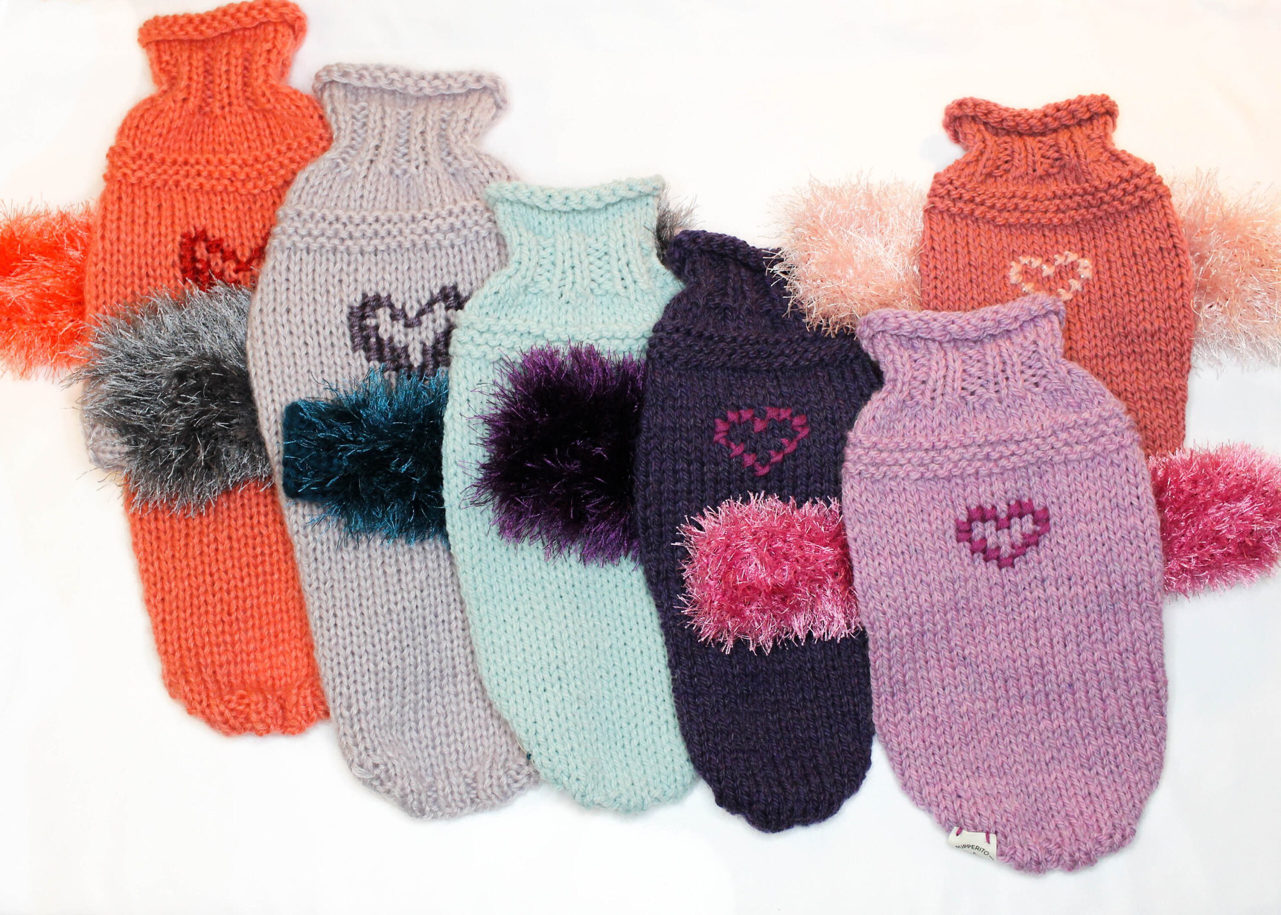 Handknitted dog sweater with fluffy arms in faux fur for small dogs comes with embroidered heart – perfect for Valentine’s day or as a Valentine’s gift for your precious pet πŸ™‚ Perfect for colder weather because of natural yarn. Ideally suits smaller breeds such as chihuahua, russian toyterrier, pincher, yorkie or toy poodle, but we do make for any smaller breeds or even cats.