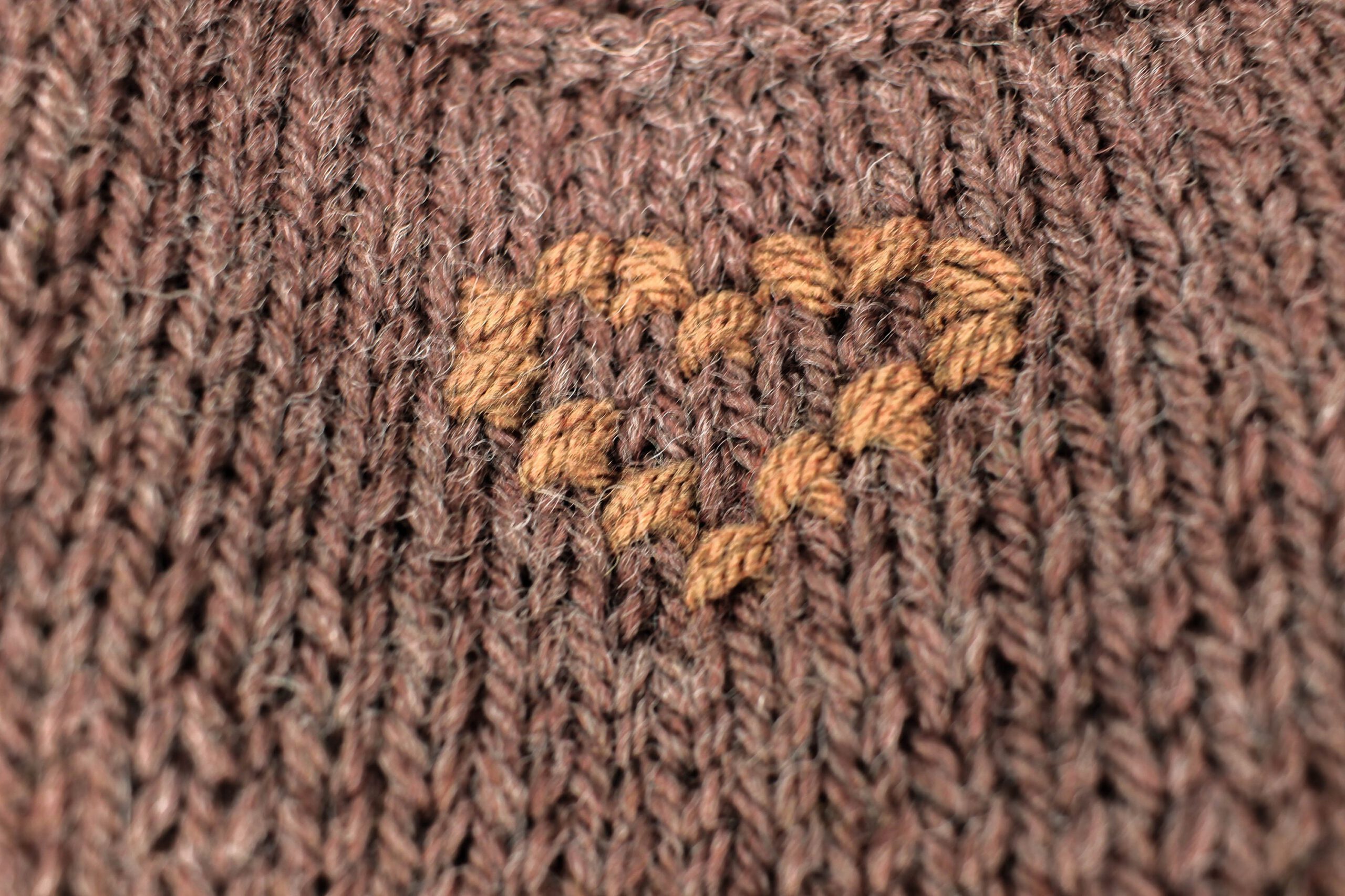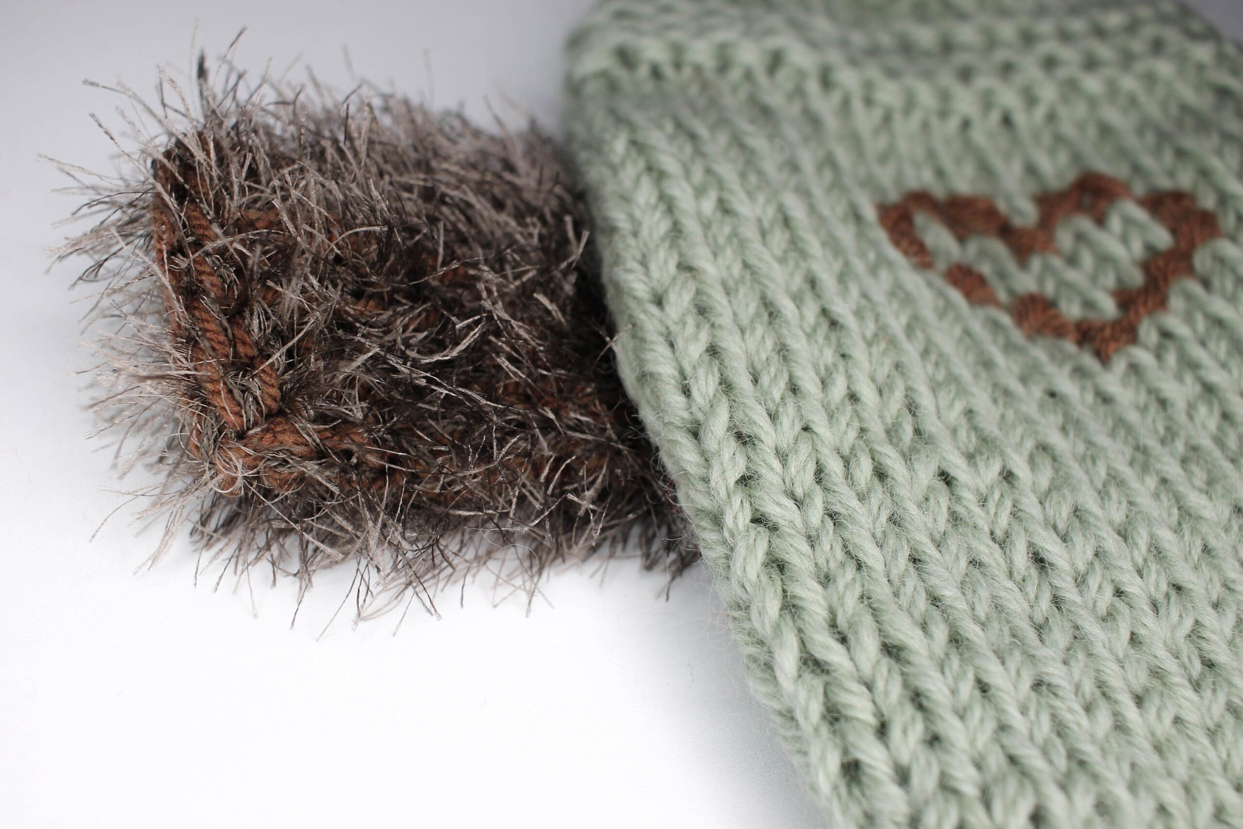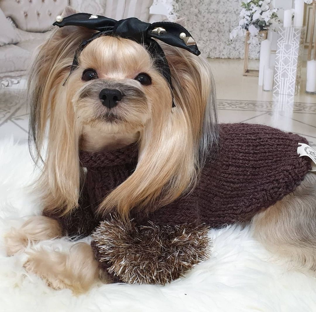 Handknitted dog sweater with fluffy arms in faux fur for small dogs in brown and gray. Embroidered heart makes it perfect for Valentine’s day or as a Valentine’s gift for your precious pet π