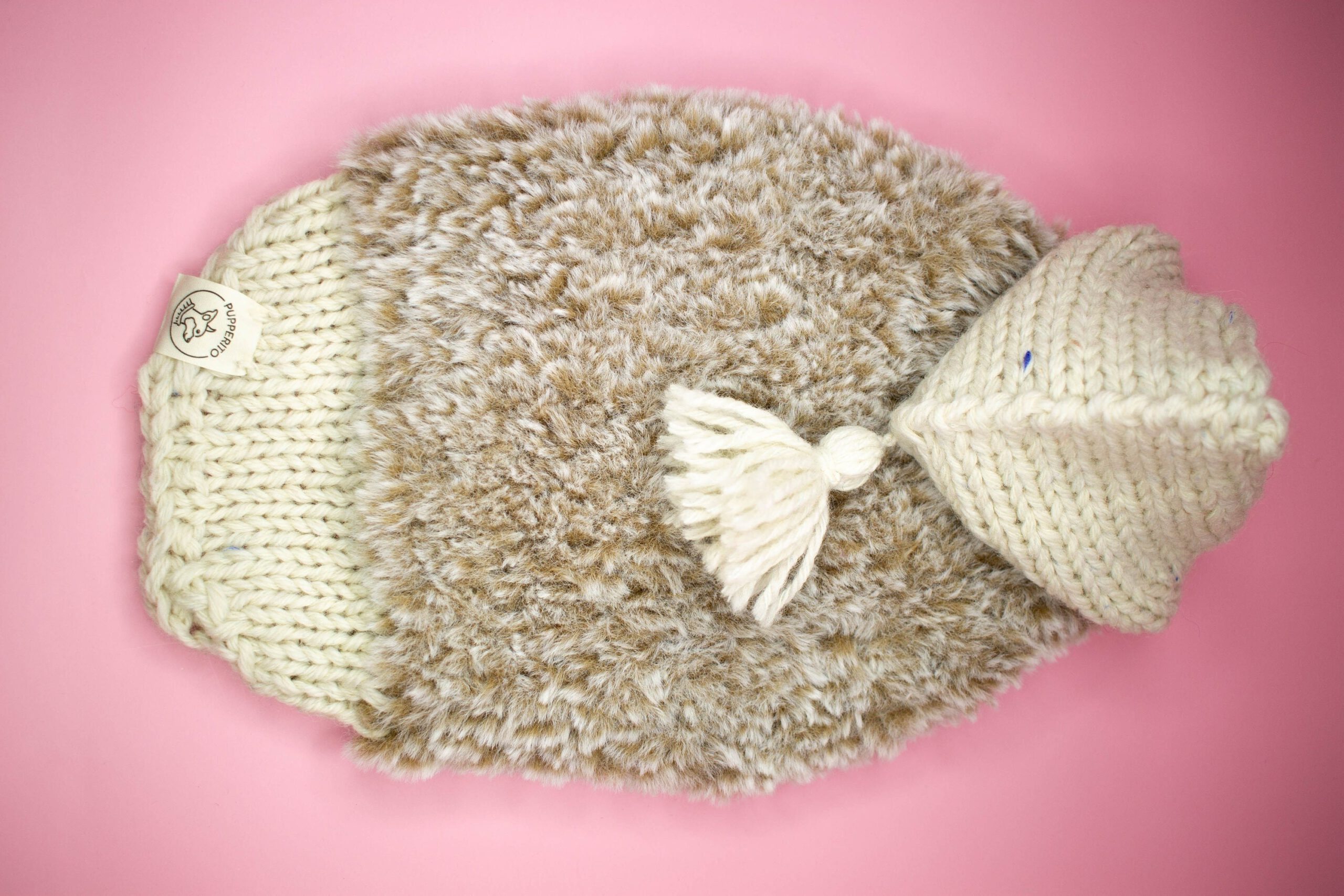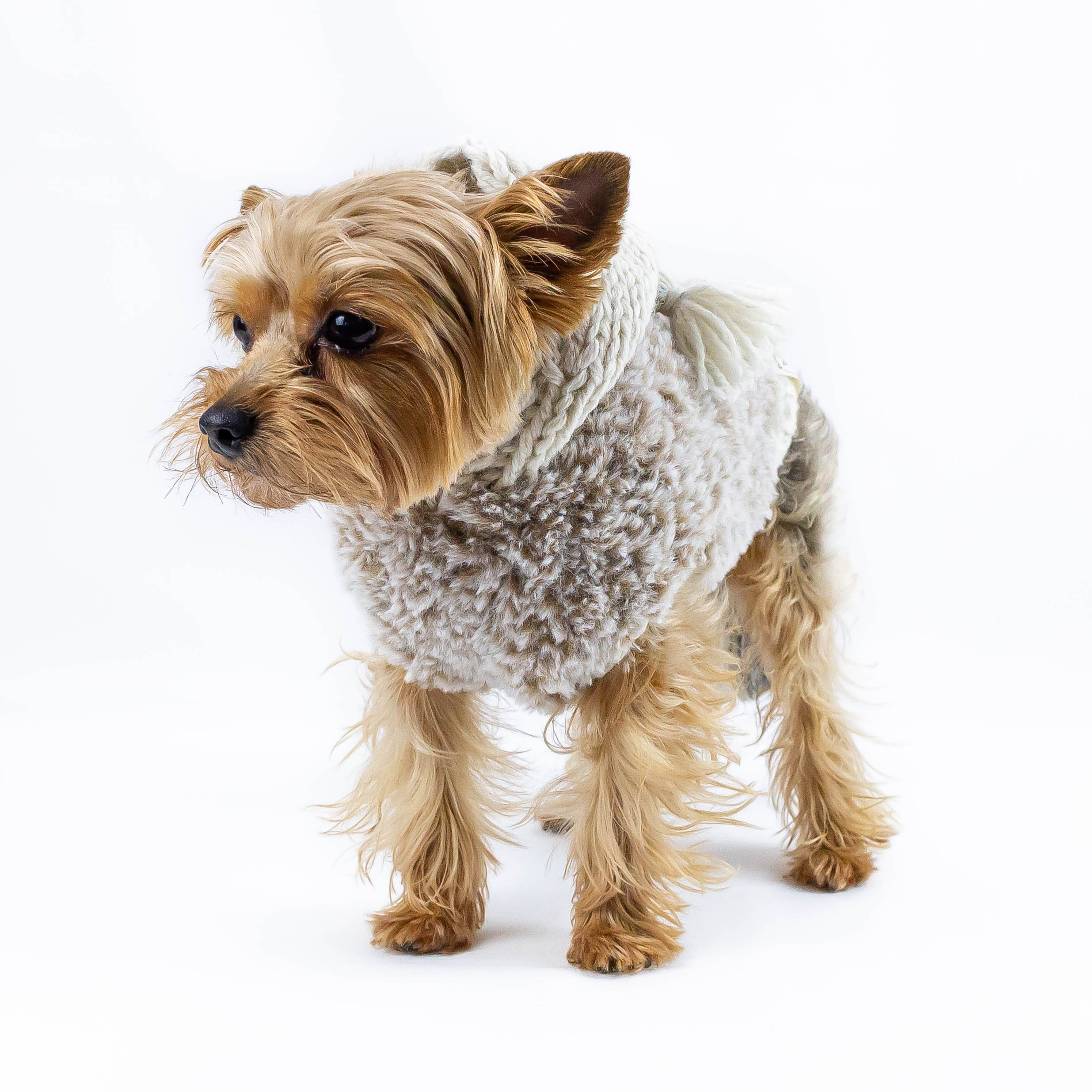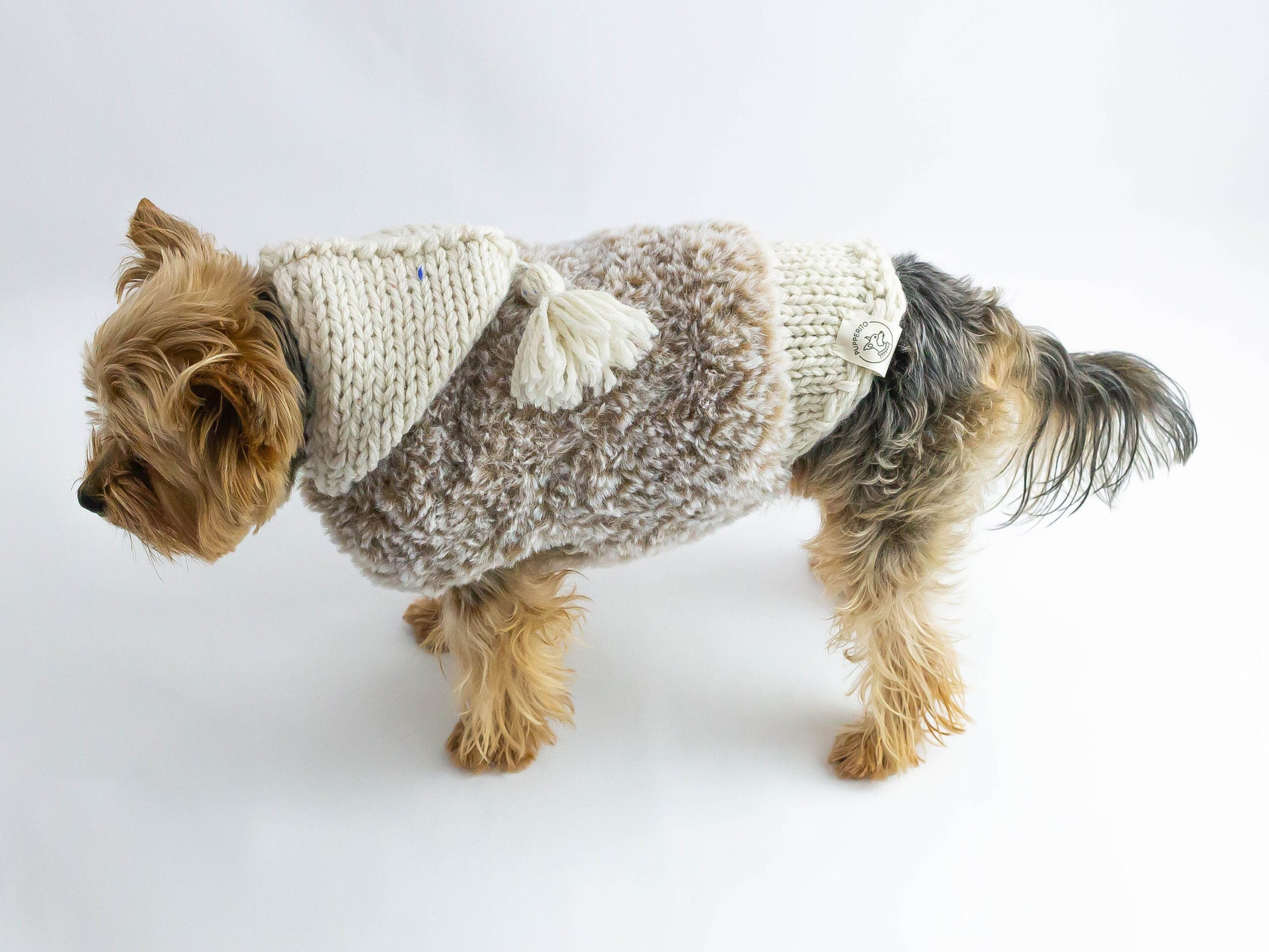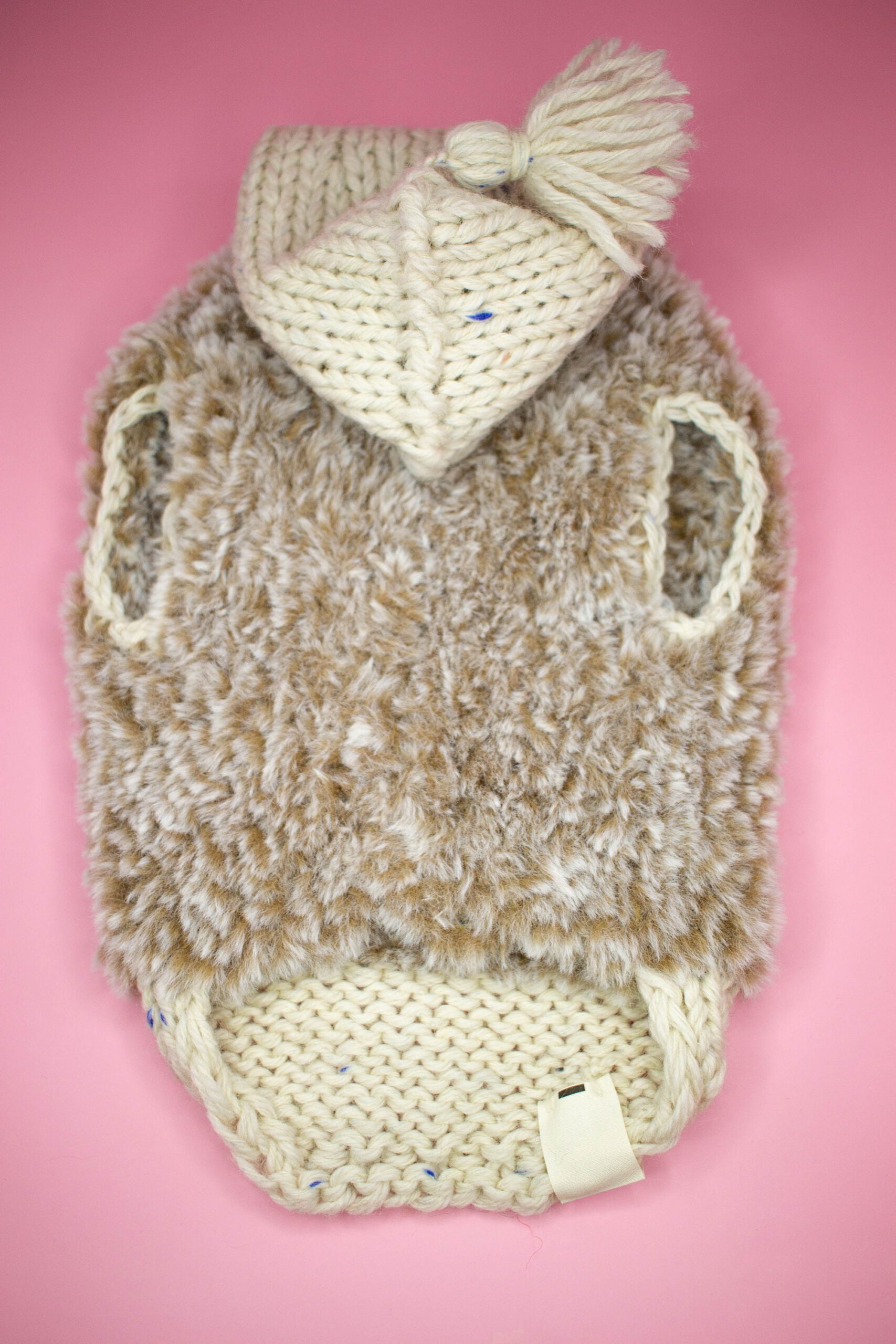 Turn your fur baby into the ultimate cuddle monster with this adorable fluffy, faux fur style coat! Your pup deserves the softest, fluffiest, and coziest outfit on the market. Hand-knitted with love, this brown and beige luxurious faux fur and wool blend hoodie keeps your furry friend warm in style. Perfect for colder days, it’s super soft on the skin or fur, has a comfy fit and super soft, stretchy yarn, allowing for free movement, and so easy to slip on and off. Ideal for smaller breeds, but customizable for any breed—even cats! Pawlar Bear features a cozy hoodie with a tassel, adding an extra touch of playfulness and warmth to your pup’s cozy look.