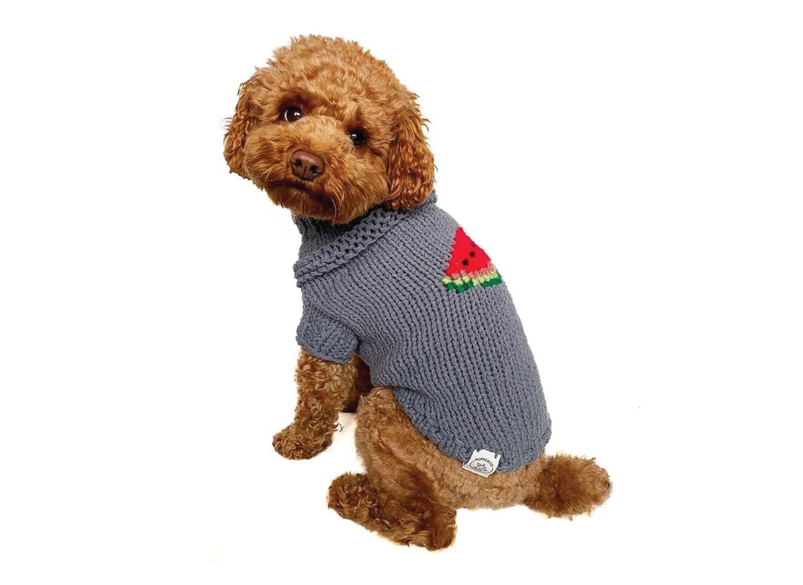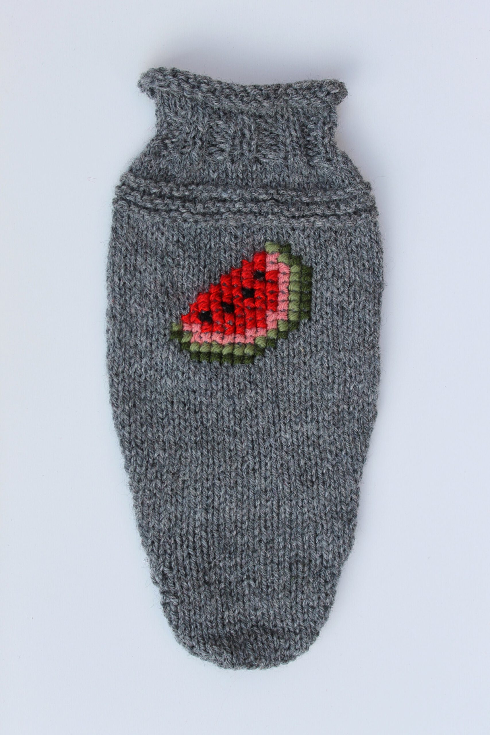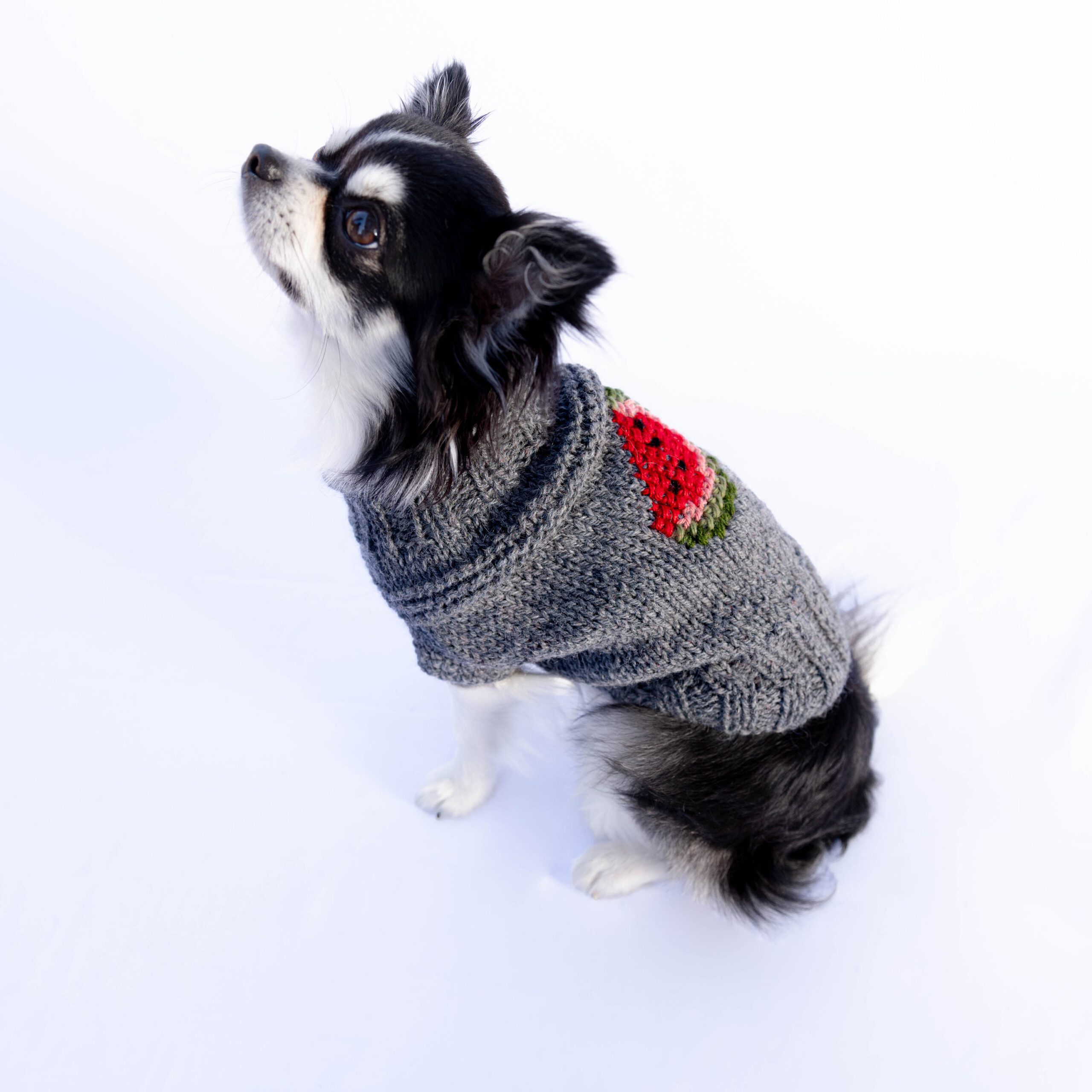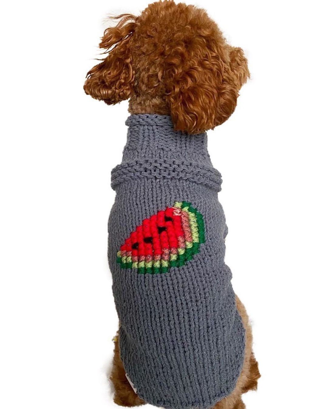 Handknitted woolen dog sweater with watermelon for small dogs – super cute and warm (80% wool). Original and super fun!