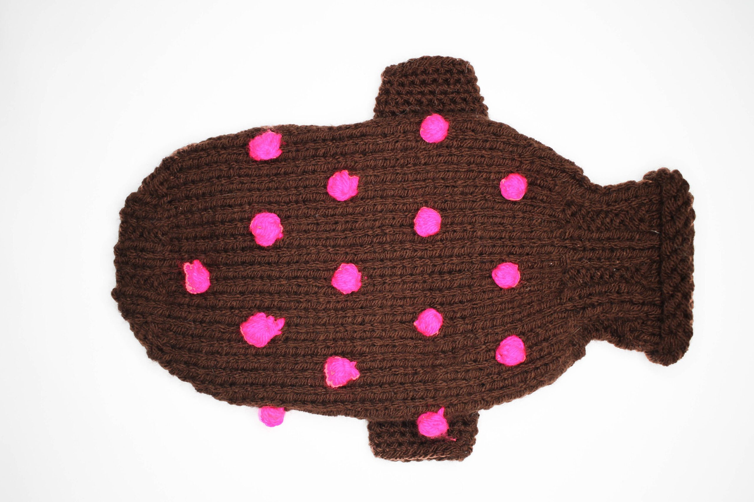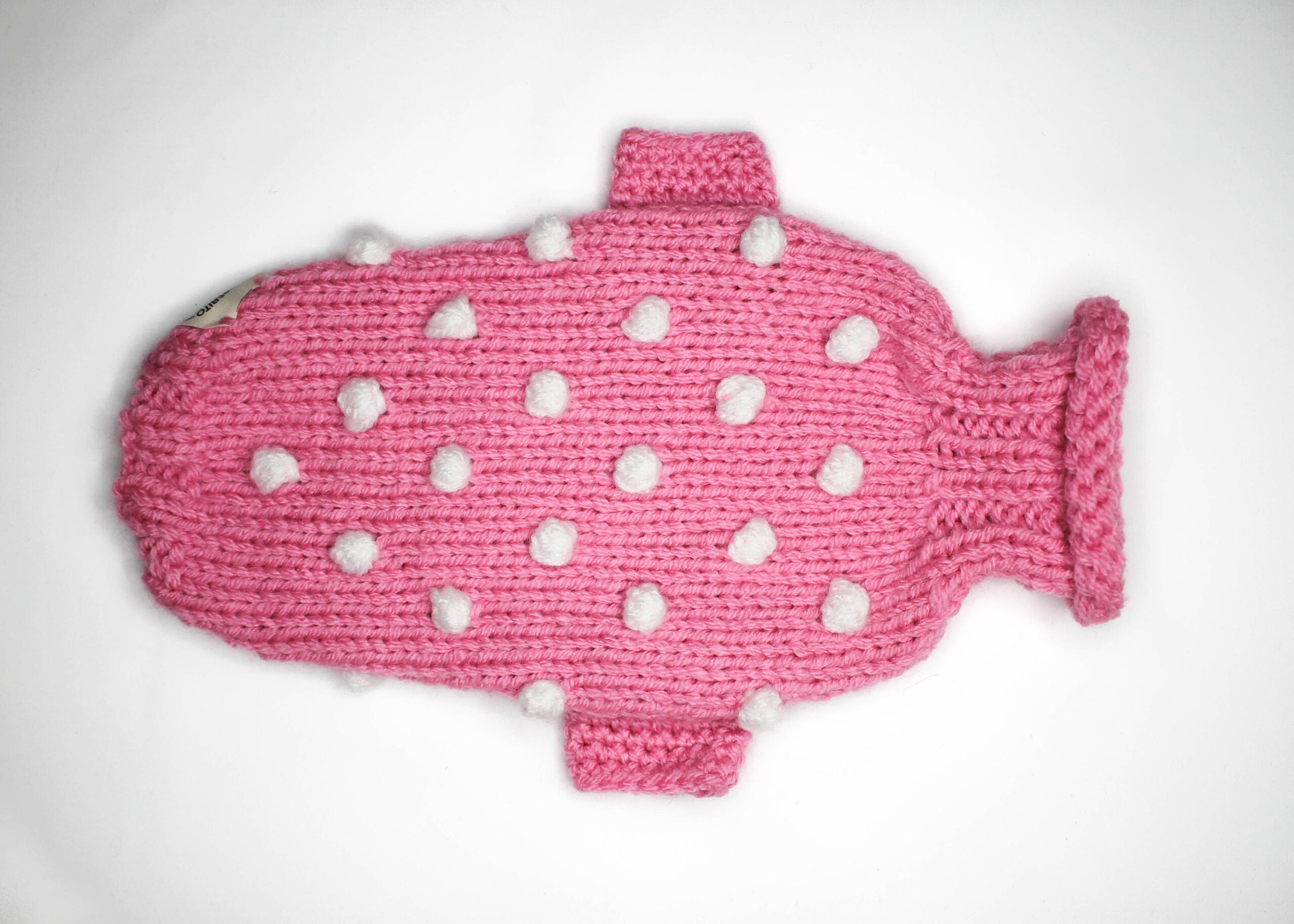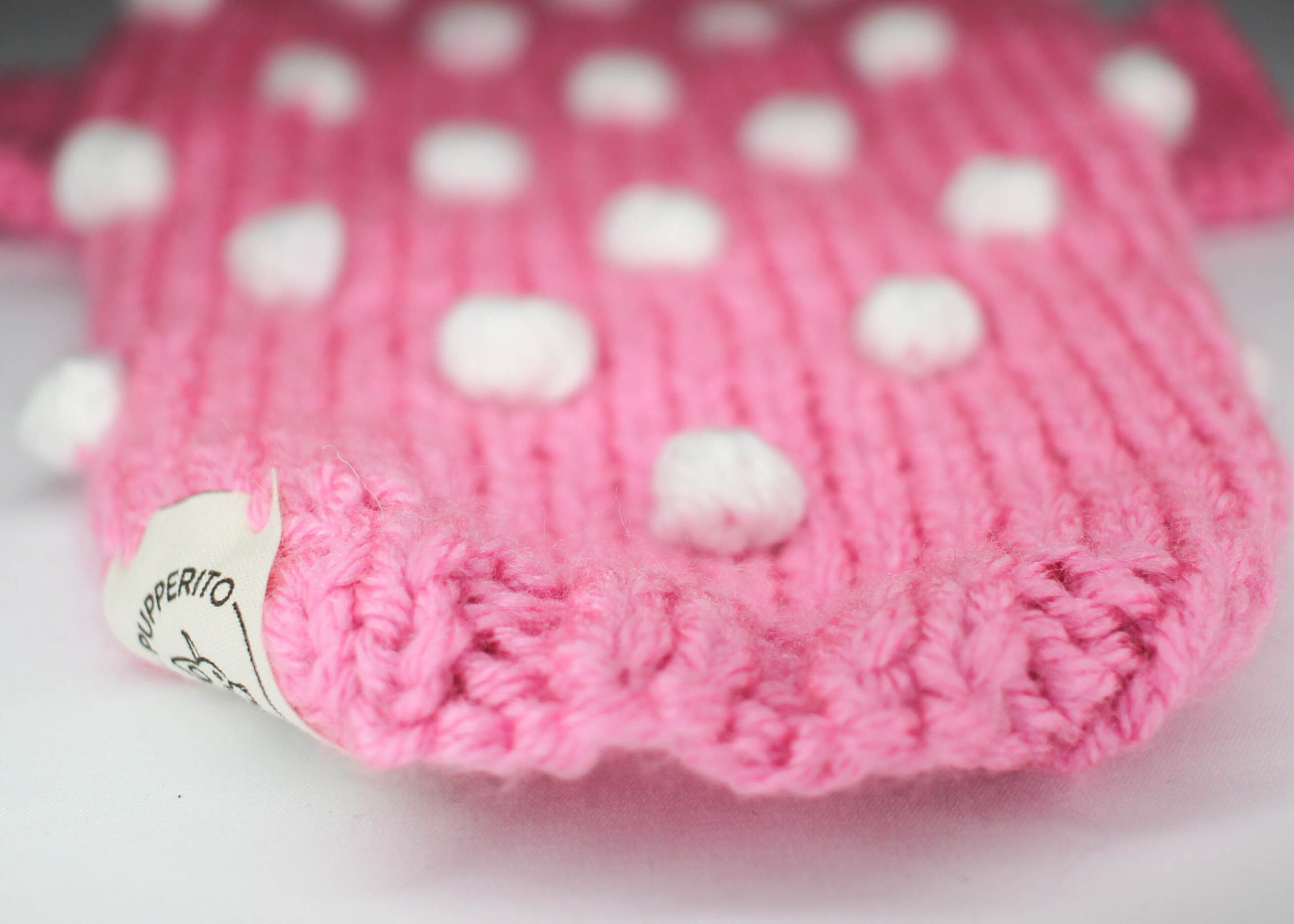Handknitted woolly sweater for small dogs with pompoms – super cute and 100% handmade. Perfect for colder weather because of warm yarn. Ideally suits smaller breeds such as chihuahua, russian toyterrier, iggy, pincher or yorkie, but we do make for any breed or even cats.
