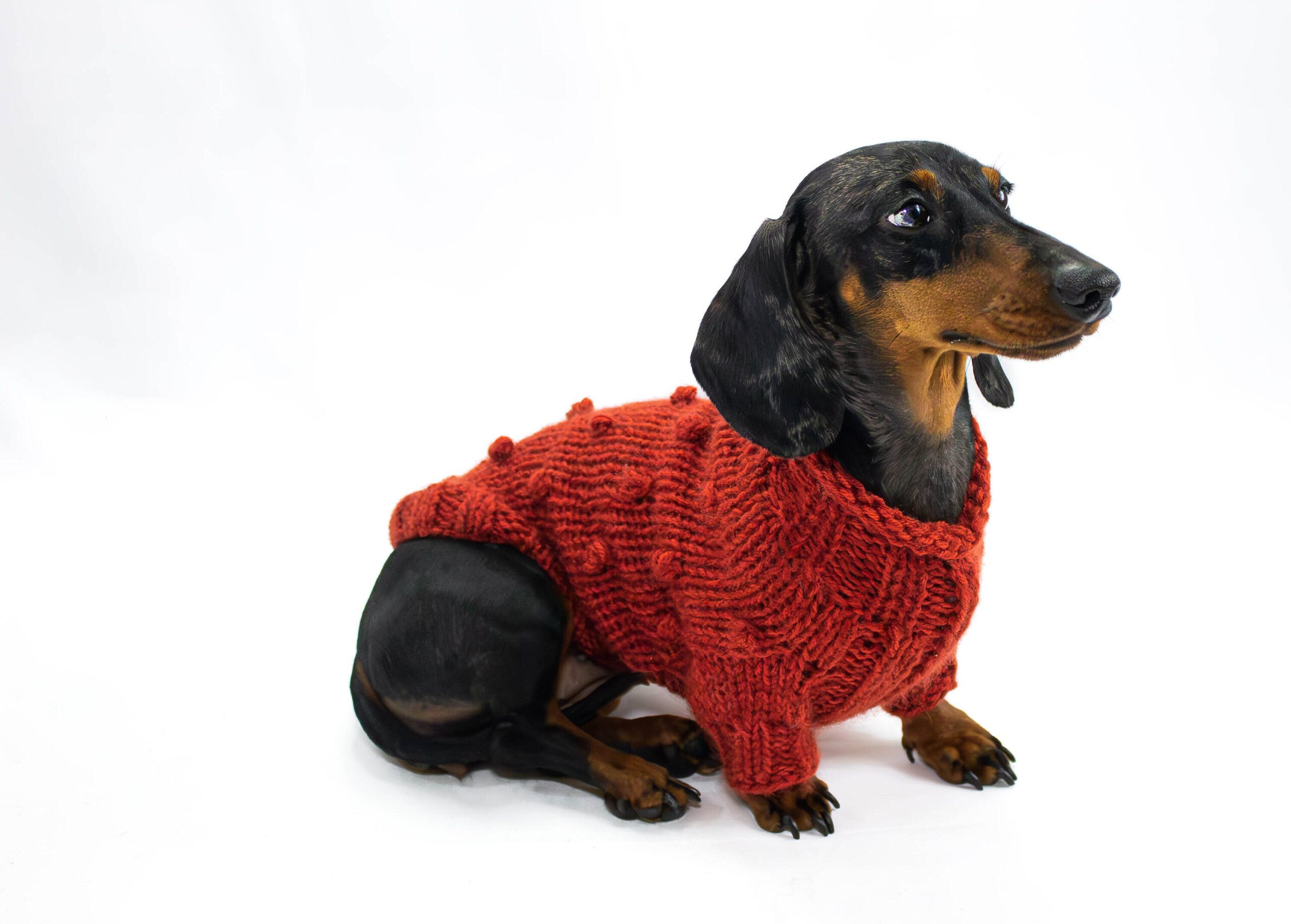 Handmade dog sweater with pompoms for small dogs in many colours. Perfect for colder weather because of warm yarn. Ideally suits smaller breeds such as chihuahua, russian toyterrier, iggy, pincher or yorkie, but we do make for any breed or even cats. GET YOURS TODAY!