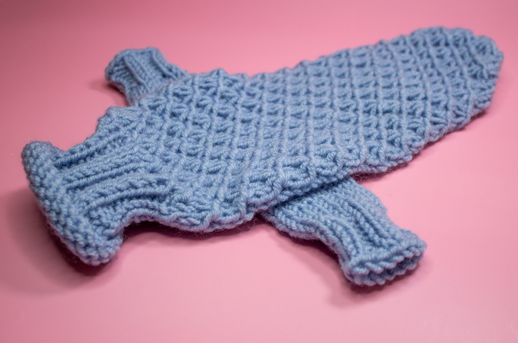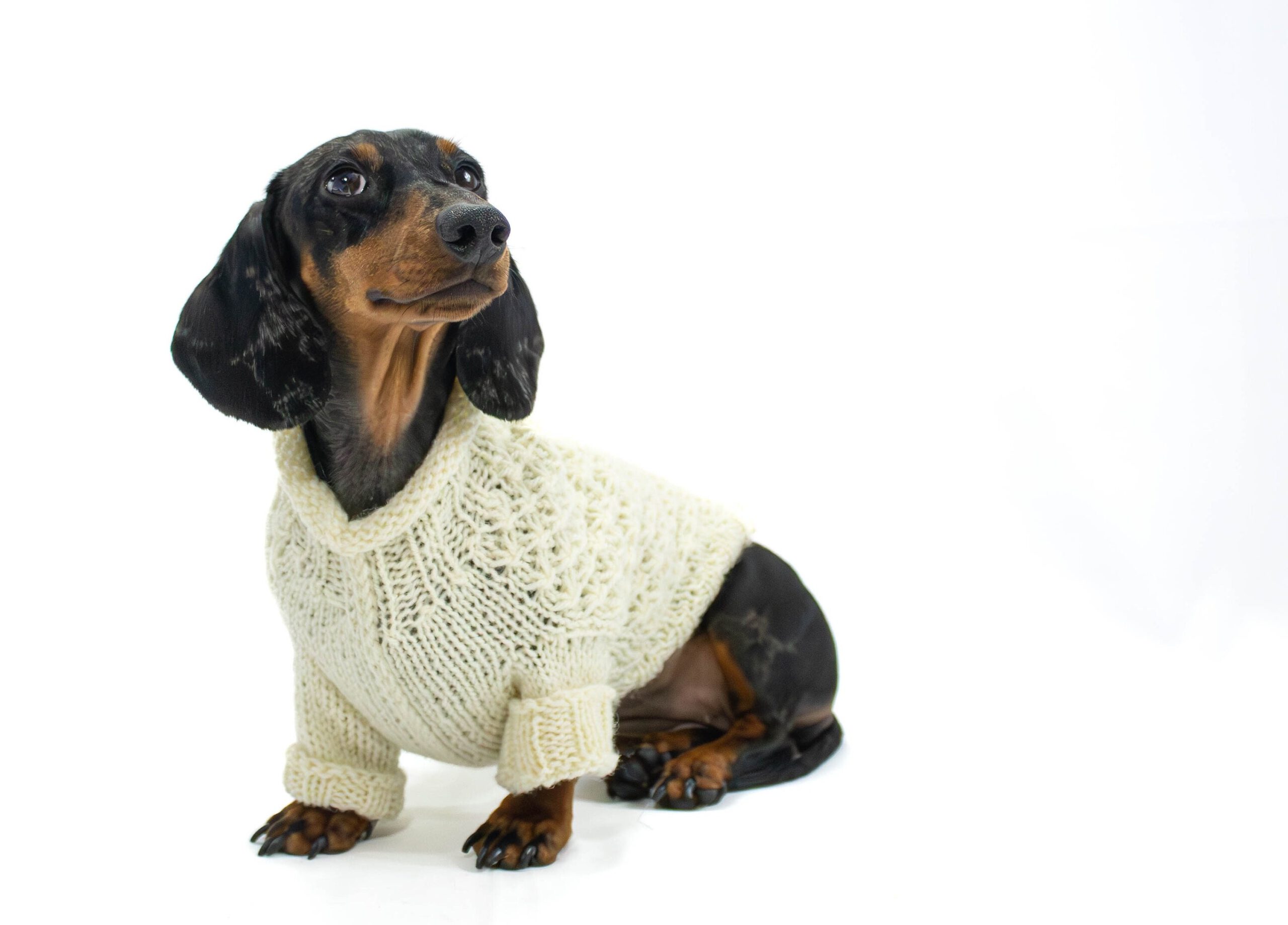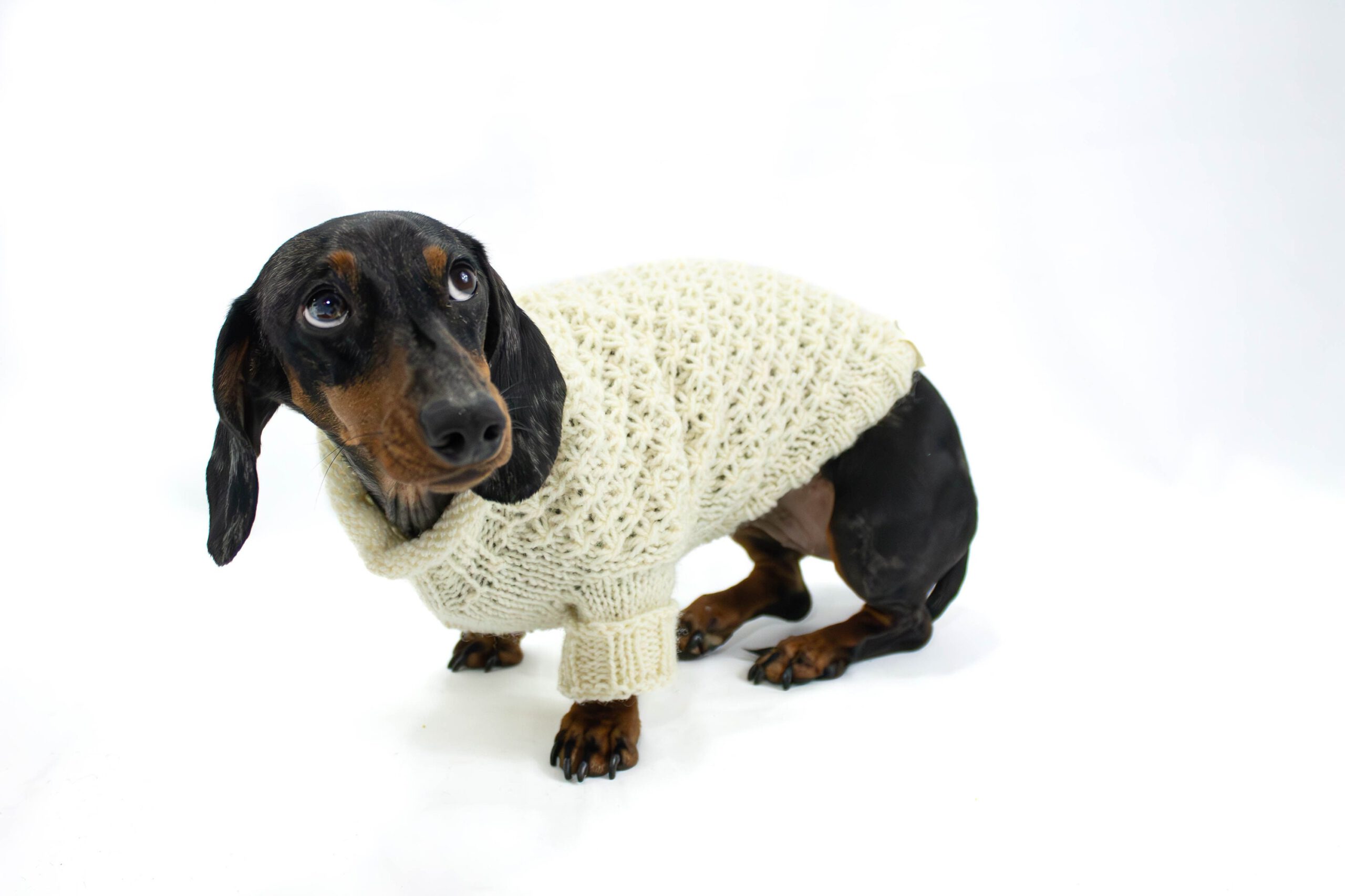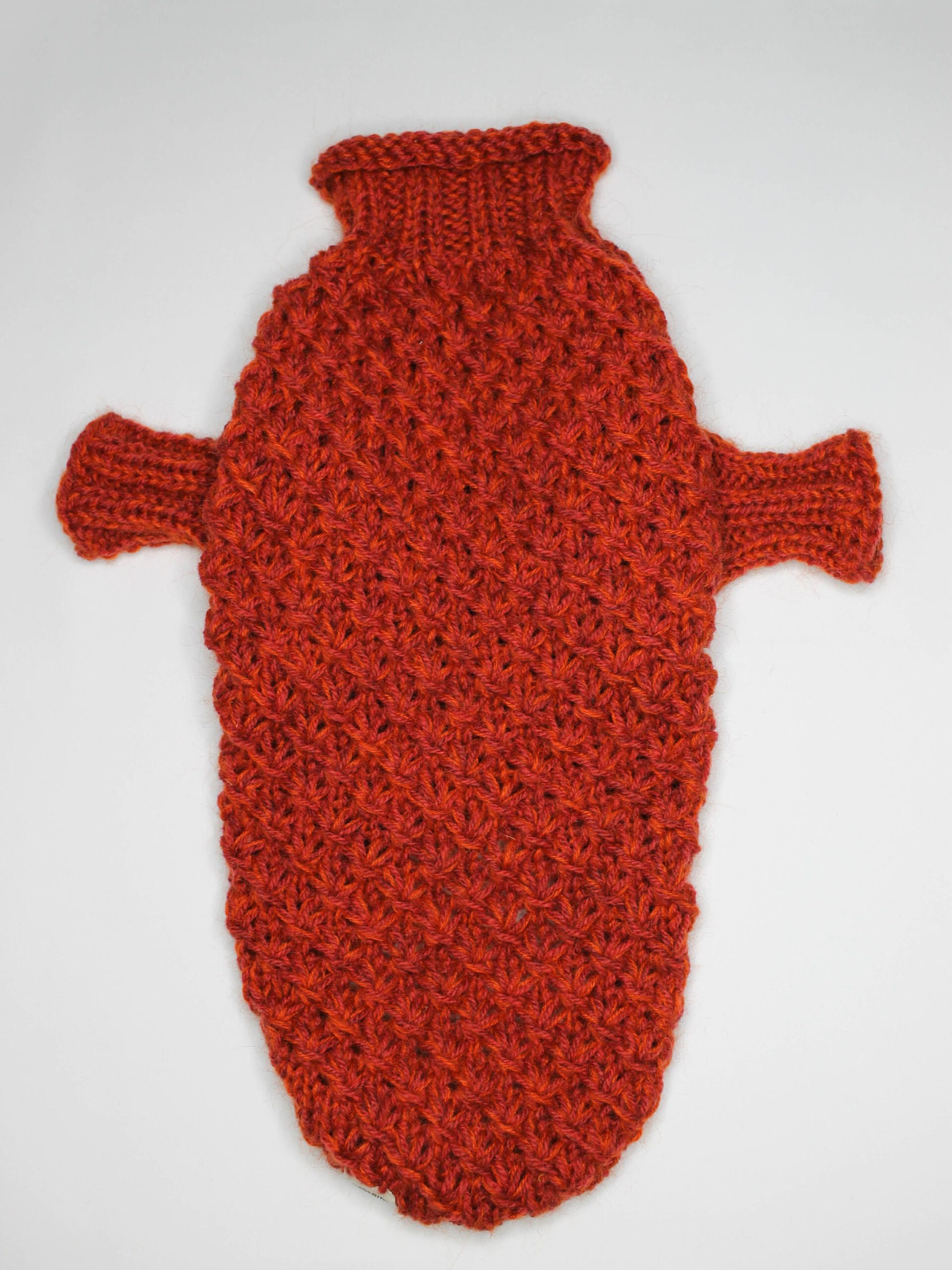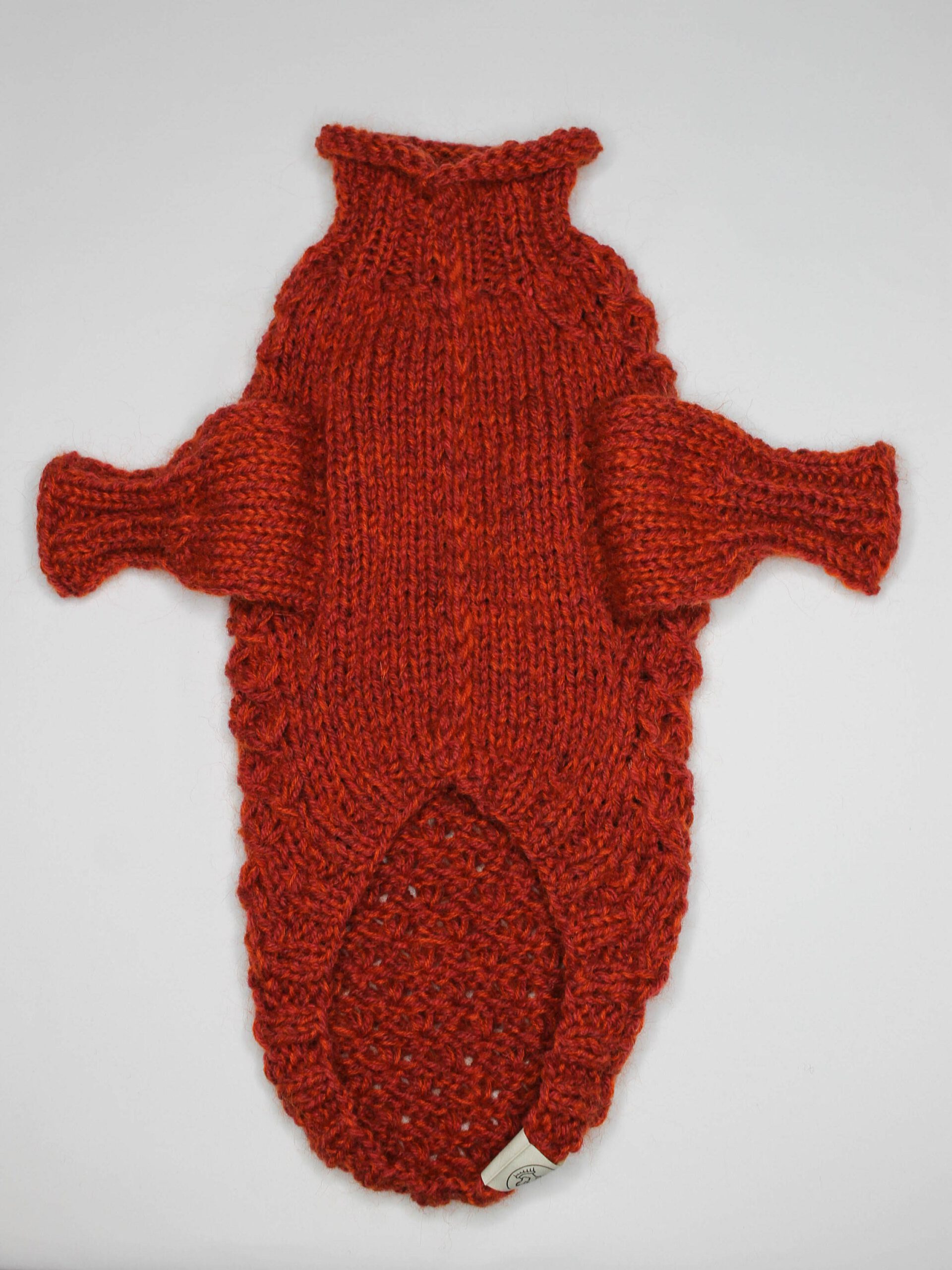 Handmade dog sweater for small to large dogs in mahogany brown, rusty brown, light blue and ivory white in unique stitch. 100% handknitted and warm (80% of premium wool), perfect for colder weather. GET YOURS TODAY!