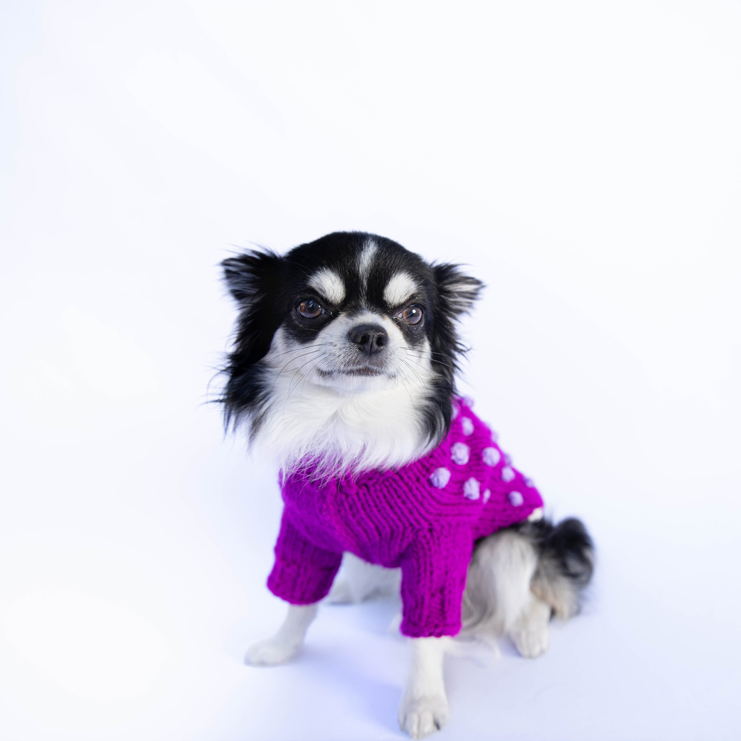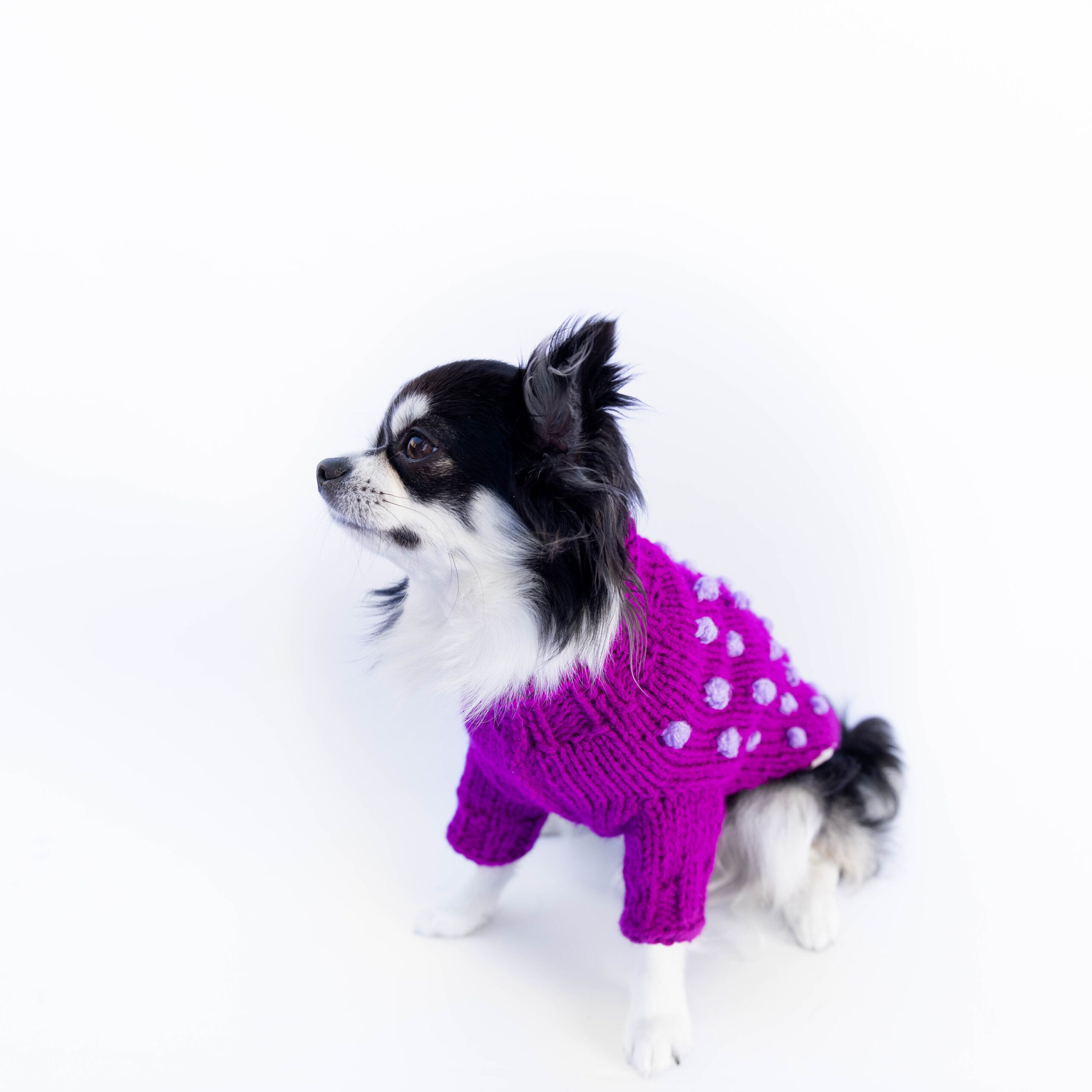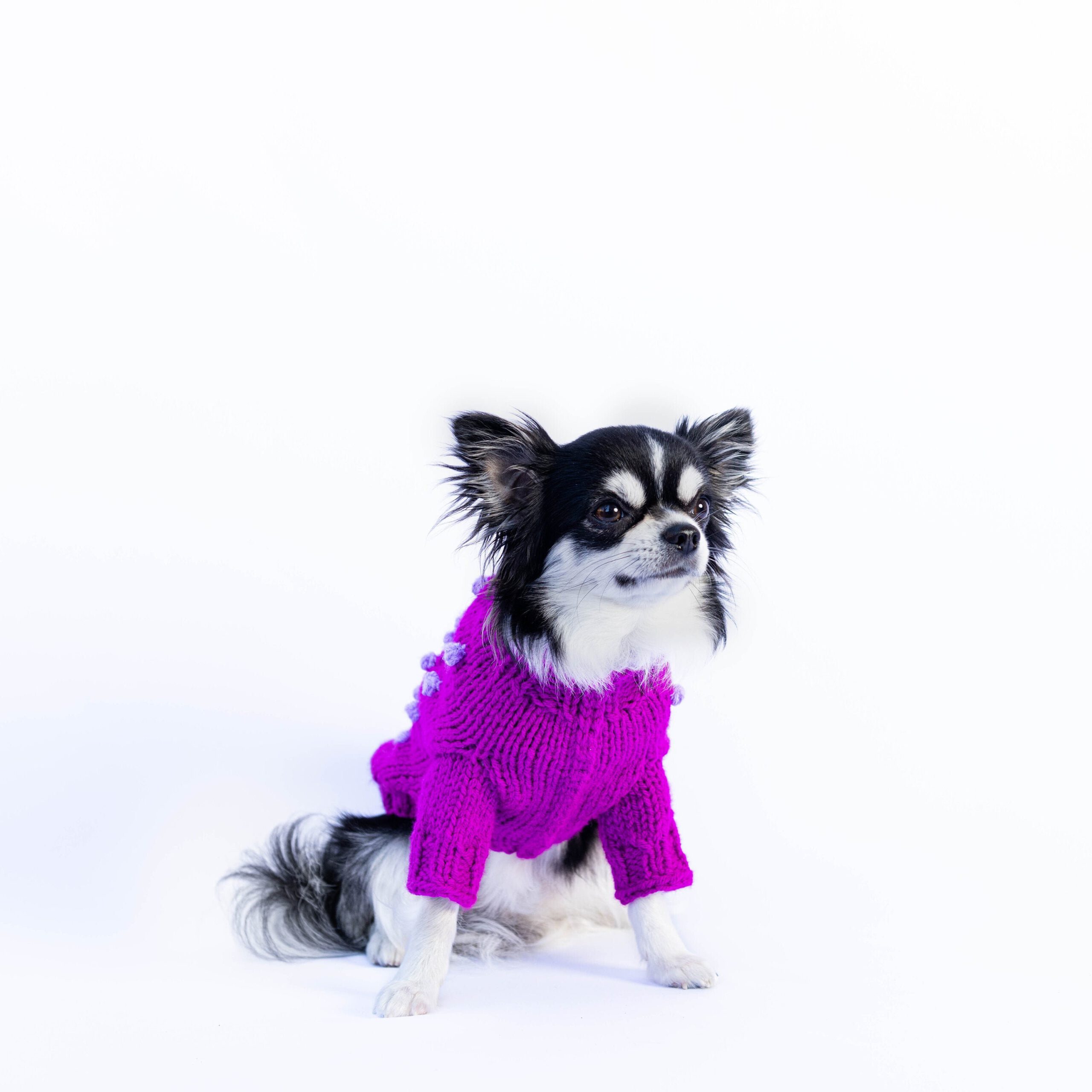 Handmade dog sweater for small to large dogs – super cute with with pompoms in wool blend! GET YOURS TODAY!