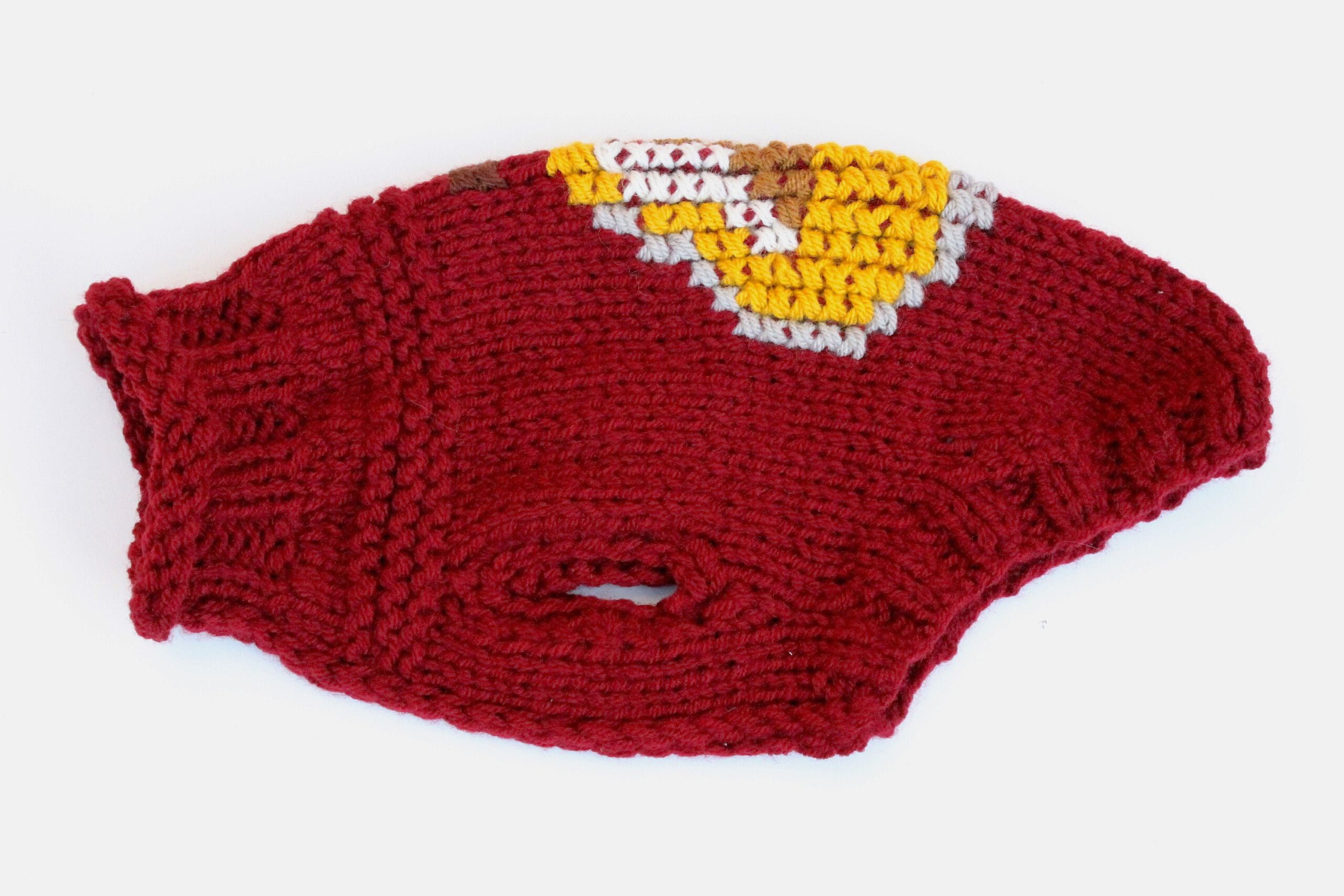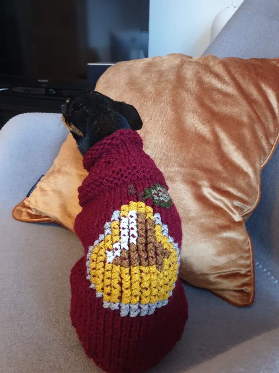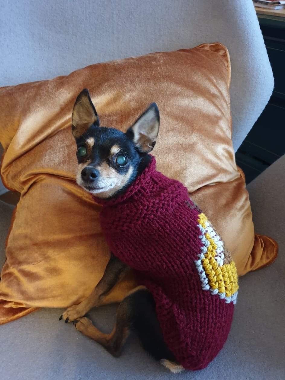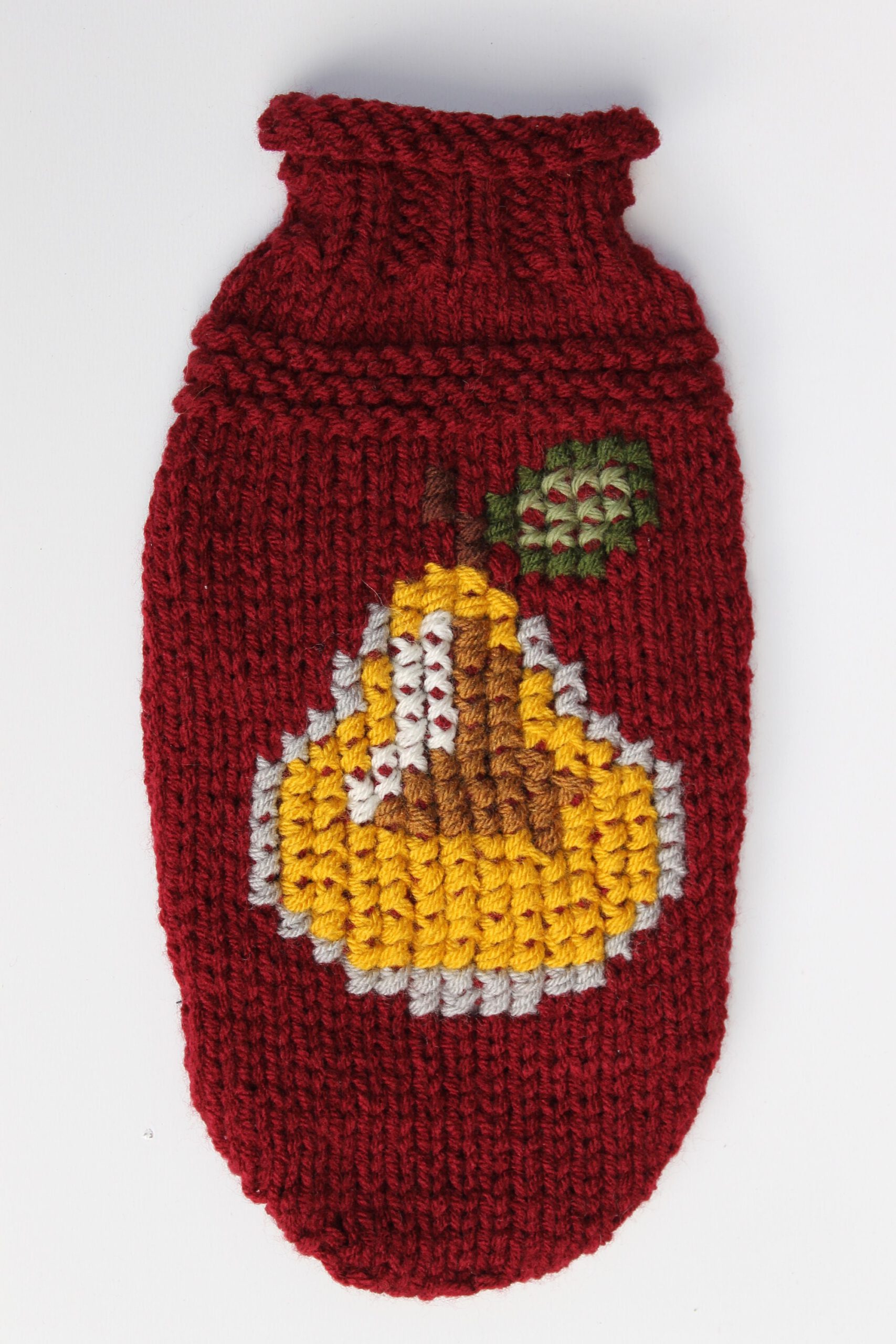 Super cute handknitted dog sweater with pear.