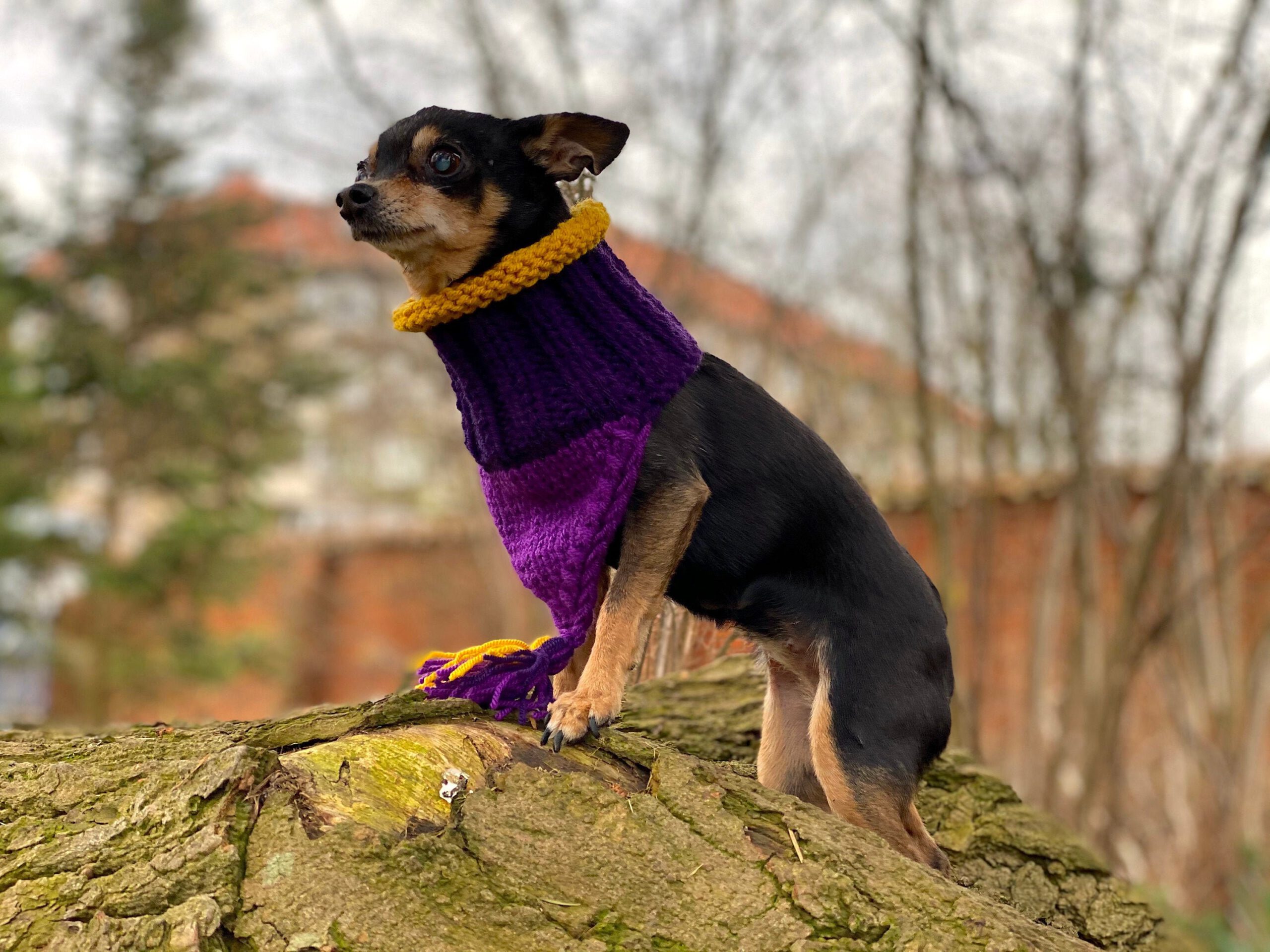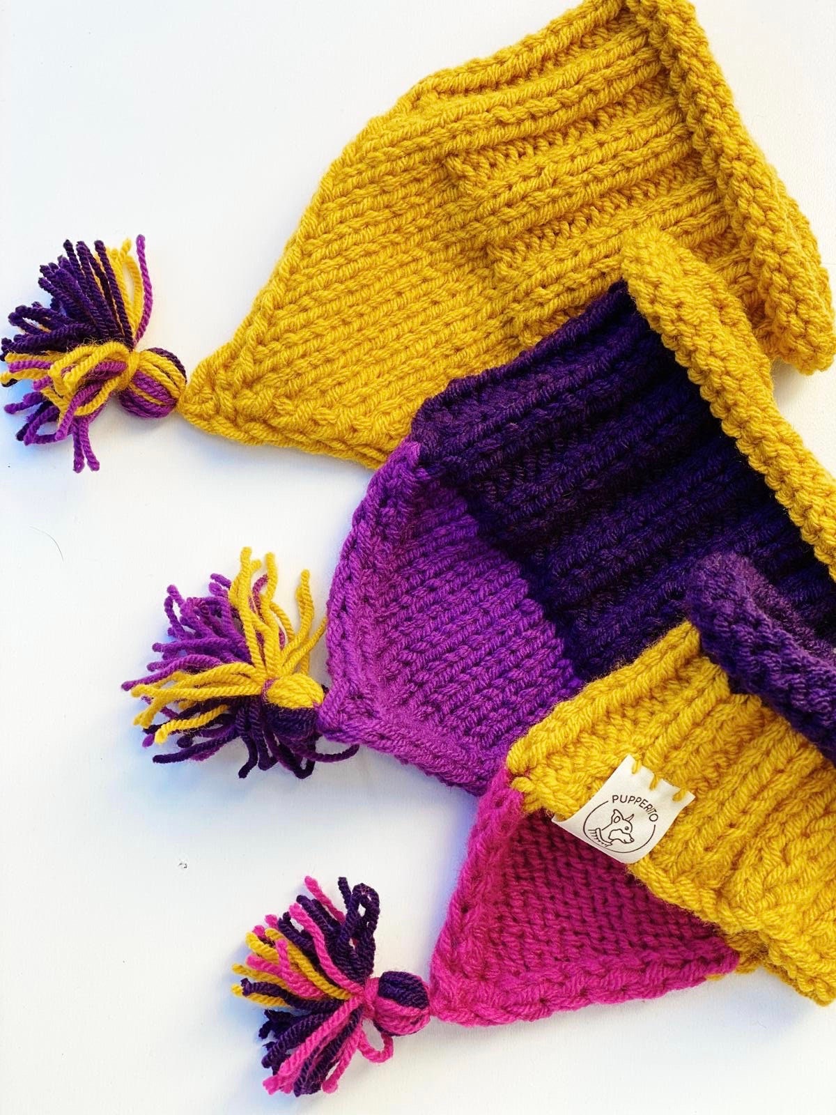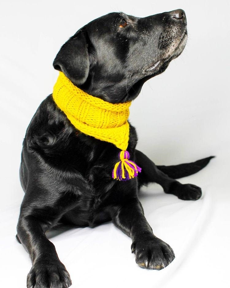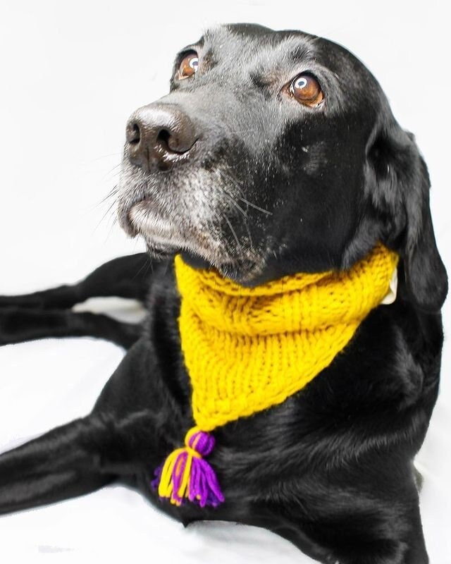 Super cute and trendy handmade knitted bandana / scarf / snood / neckwarmer in many colors with a tassel for small to medium dogs or cats. Wool and premium acryl blend. Perfect for colder weather because of warm yarn.