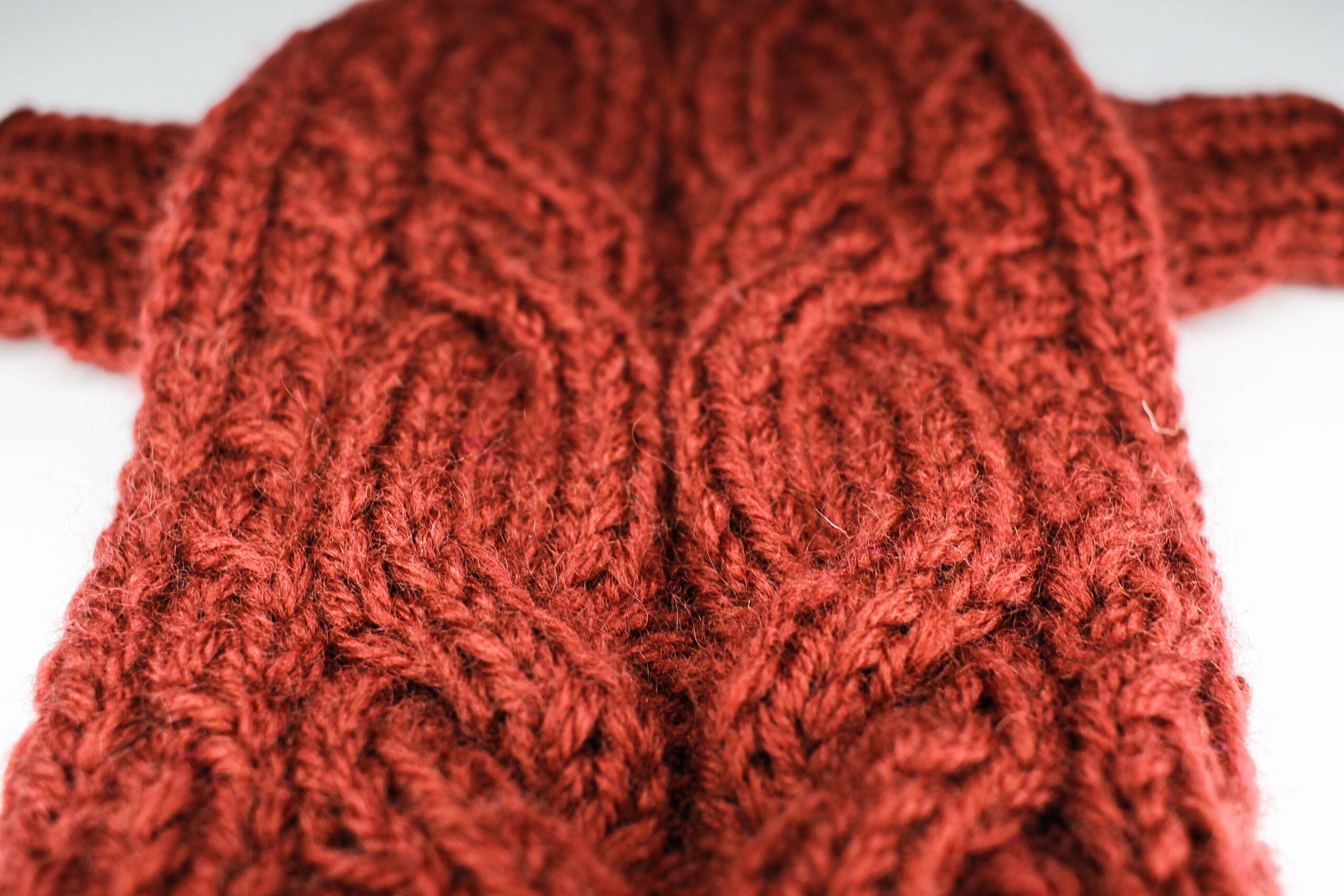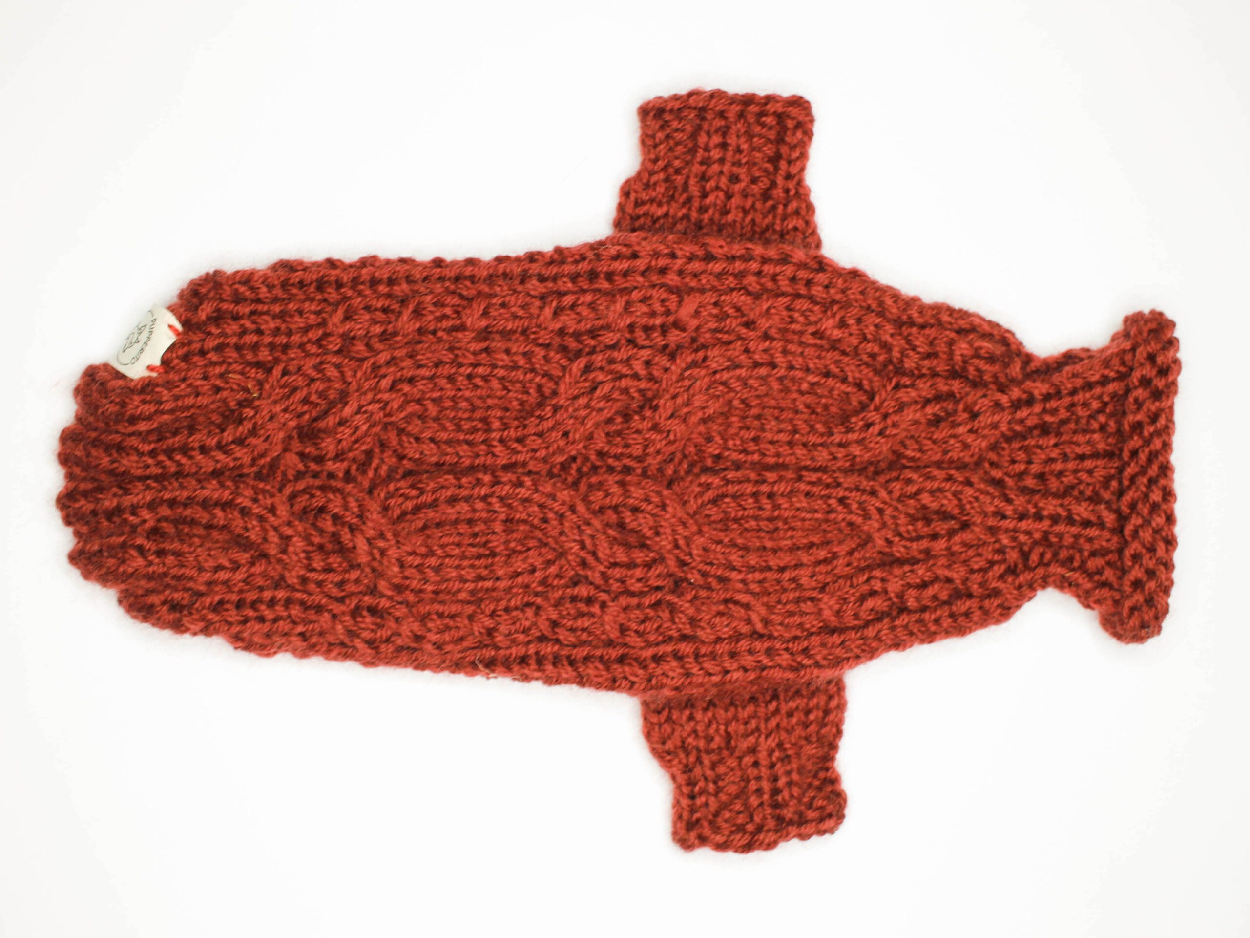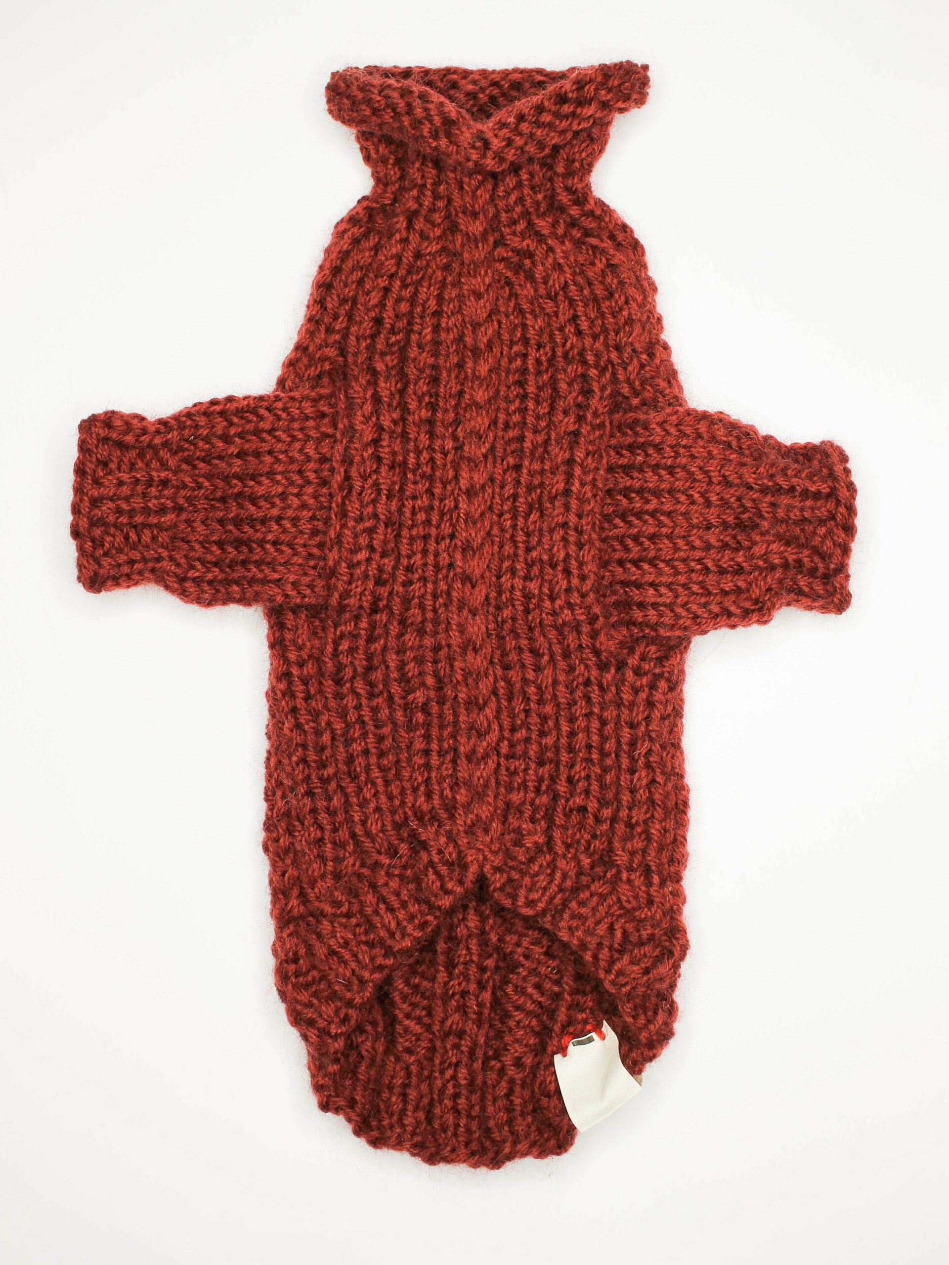 Handmade wool cable-knit dog sweater for small dogs in brown. Perfect for colder weather because of 100% wool. Ideally suits smaller breeds such as chihuahua, russian toyterrier, pincher or yorkie, but we do make for any breed or even cats.